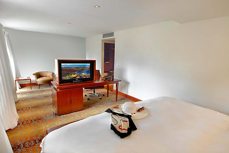 This room features egyptian cotton sheets, feather pillows and cushion, bathroom with shower, LCD cable TV, high speed Internet, mini-bar, and air conditioning.